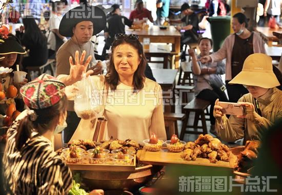 美食街上人声鼎沸,酸奶粽子、烤全羊等上百种各色美食让食客们赞不绝口。大巴扎美食街今年4月经过升级改造后,新增露台就餐位,一次可容纳3000余人就餐。