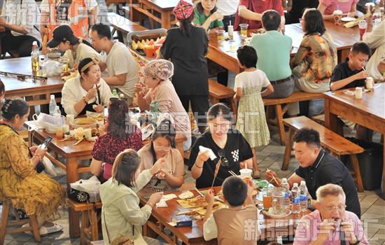 美食街上人声鼎沸,酸奶粽子、烤全羊等上百种各色美食让食客们赞不绝口。大巴扎美食街今年4月经过升级改造后,新增露台就餐位,一次可容纳3000余人就餐。
