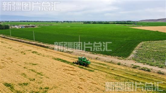 关键字:博尔塔拉蒙古自治州 博州 博乐市 达勒特镇 巴润古尔村 农业 粮食 麦田 收割机 收割 冬小麦 小麦 夏粮 颗粒归仓