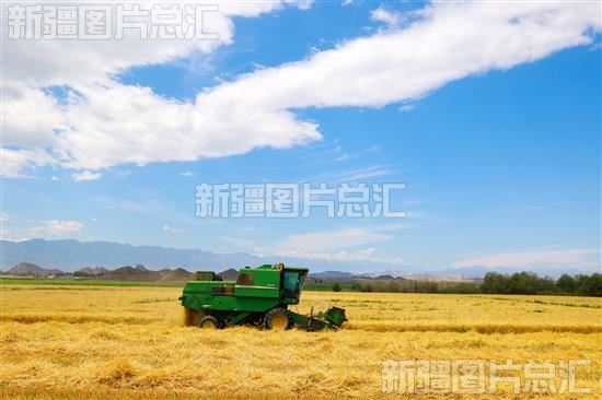 关键字:博尔塔拉蒙古自治州 博州 博乐市 达勒特镇 巴润古尔村 农业 粮食 麦田 收割机 收割 冬小麦 小麦 夏粮 颗粒归仓