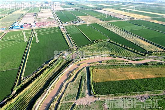 2023年7月1日,俯瞰新疆生产建设兵团第二师22团农田,呈现出一派生机勃勃的田园美景(无人机拍摄)。