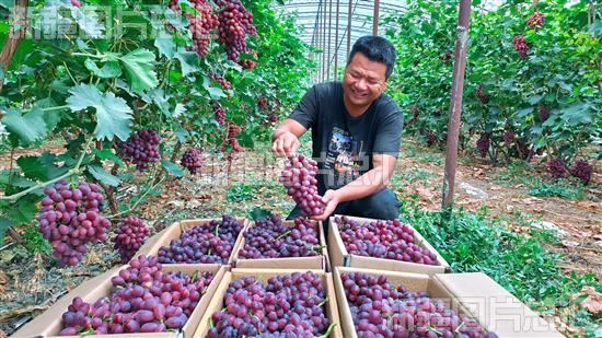2023年7月5日,察布查尔锡伯自治县米粮泉回族乡米粮泉村村民采收鲜食葡萄。眼下,该村种植的25座大棚葡萄、油桃等早熟鲜果陆续成熟上市,预计每座大棚为农民带来2.6万元的经济效益。
