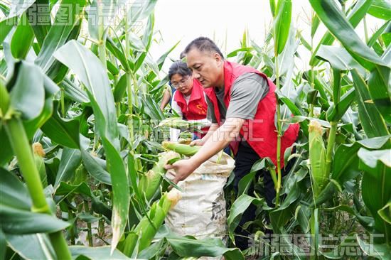 2023年7月8日,工作队队员帮助村民采摘鲜食玉米。
