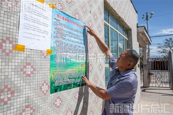 2023年7月7日,位于吉木萨尔县三台镇的昌粮集团吉木萨尔粮油有限责任公司三台仓库员工张贴夏粮收购相关信息。