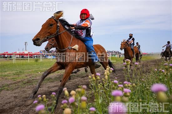 当日,巴里坤哈萨克自治县、新疆生产建设兵团第十三师红山农场在巴里坤县北湖赛马场共同举办农牧民运动会(赛马会),速度赛马、赛骆驼、马上拾银、姑娘追等比赛吸引众多游客前来观看。