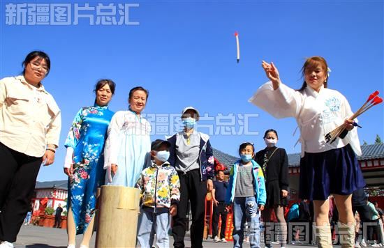 2023年5月18日,游客在活动现场开展“投壶”游戏。