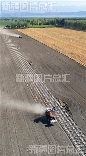 关键字:博尔塔拉蒙古自治州 博州 精河县 大河沿子镇 农业 农民 夏收 夏耕 夏播 夏尔托热村 农田 大型拖拉机 犁地 土地平整 复播玉米 白菜