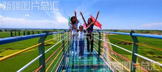 关键字:伊犁哈萨克自治州 伊犁州 察布查尔锡伯自治县 察布查尔县 纳达齐牛录乡 农业 观光农业 旅游 稻田 稻田画 游客 玻璃栈道 观赏 拍照 游玩