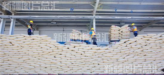 2023年7月14日,中国石油天然气股份有限公司独山子石化分公司员工转运合成橡胶产品。