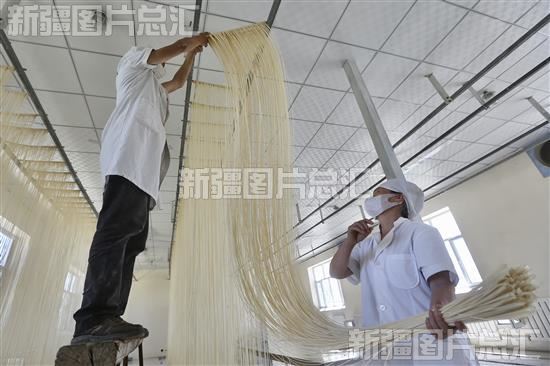 关键字:昌吉回族自治州 昌吉州 木垒哈萨克自治县 西吉尔镇 农业 经济 乡村振兴 聚清食品有限责任公司 生产车间 流水线 工人 检查 小麦 手工挂面 均匀度 色泽