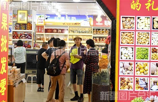 2023年7月20日,游客在布尔律县中俄老码头风情街河堤夜市选购新疆特产。
