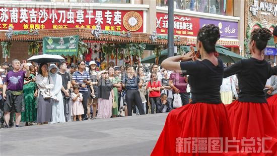 7月30日,第六届中国新疆国际民族舞蹈节配套活动——“一起来跳新疆舞”乌鲁木齐市广场舞展演活动在新疆国际大巴扎举行,吸引了当地多个民间舞蹈团体及众多广场舞爱好者参与其中,也让来此观光游玩的各地游客和市民驻足欣赏。游客和市民随着舞曲边学边跳,步行街成为欢乐的海洋。