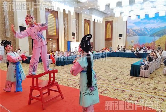 2023年7月29日,昌吉回族自治州艺术剧院演员为乌兹别克斯坦国家大剧院Tumor歌舞团的演职人员表演传统戏曲节目。