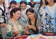 当日,乌兹别克斯坦国家大剧院Tumor歌舞团一行前往昌吉市,与昌吉回族自治州艺术剧院、文化馆的演职人员和非遗传承人进行文化交流,感受中国传统表演艺术的魅力,动手体验非遗技艺。
