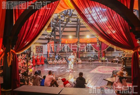 2023年7月5日,游客在那拉提河谷草原乌孙大营景点观赏民俗表演。