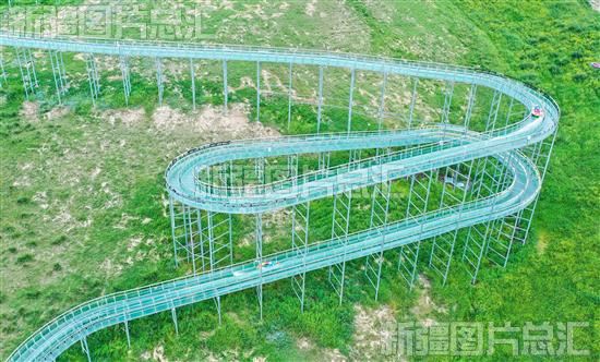 2023年7月5日,游客在那拉提空中乐园体验水滑道和玻璃栈道项目。