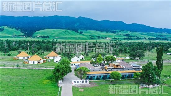 2023年7月5日,俯瞰那拉提景区里的民宿。