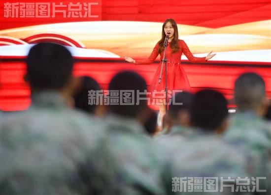 2023年7月30日,慰问群众在驻乌某部为官兵演唱歌曲。