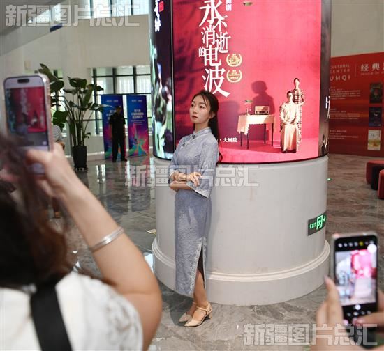 当晚,上海歌舞团舞剧《永不消逝的电波》在乌鲁木齐文化中心大剧院上演,吸引大批观众前来观赏。入场前,观众纷纷在入场票证和购买的相关文创产品上盖上专属印章,在演出海报前打卡拍照。