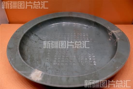新疆博物馆“故宫厅”首展展出的玉器藏品乾隆御题青玉盘(2023年7月28日摄)。