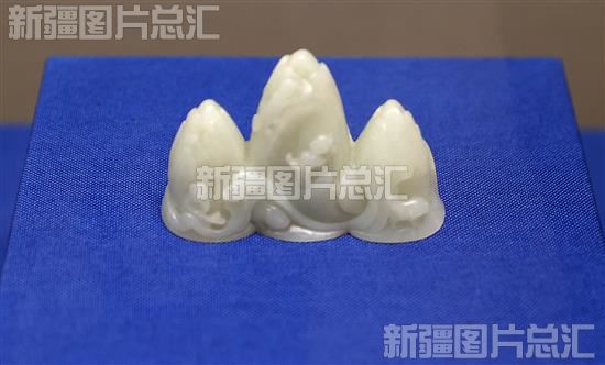 新疆博物馆“故宫厅”首展展出的玉器藏品清代白玉三峰笔架(2023年7月28日摄)。
