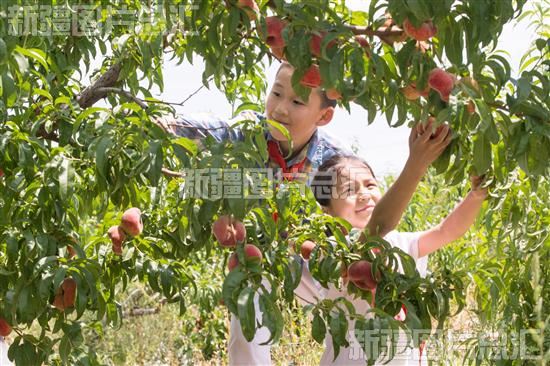 关键字:乌鲁木齐市 水磨沟区 七纺街道 暑期劳动 实践活动 新疆生产建设兵团 第十二师 104团 桃园 农户 采摘 桃子 学生 体验 劳动 快乐