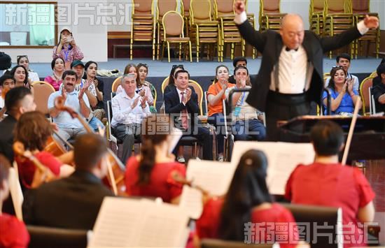 2023年7月31日,塔吉克斯坦罗拉国家功勋歌舞团一行聆听新疆艺术剧院管弦乐团演奏交响乐。