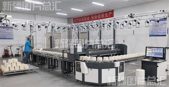 2023年8月2日,在尉犁利华纺织有限公司面纱打包场景。