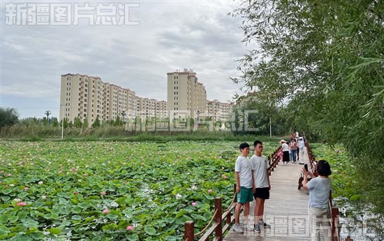 2023年8月3日,游客在阿克苏国家湿地公园游玩。
