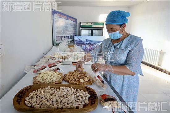 2023年8月6日,木垒哈萨克自治县雀仁乡五棵树村村民在制作奶疙瘩。