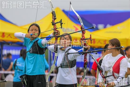 当日,自治区第十四届运动会射箭比赛在博湖县公共体育场开赛,来自全疆7个地州市代表队135名运动员切磋技艺,开弓论“箭”。