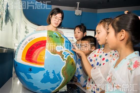 2023年7月29日,乌鲁木齐市科技馆,孩子们学习地球知识。