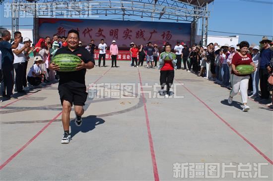 2023年8月2日,农牧民群众在参加运西瓜接力比赛。