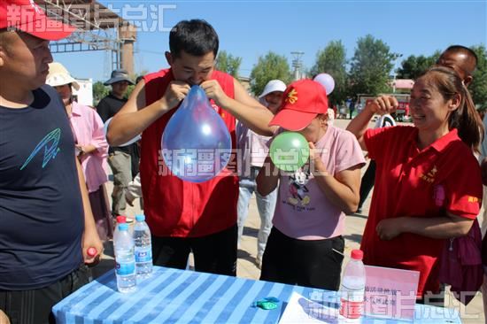 2023年8月2日,农牧民群众在参加吹气球挑战赛。
