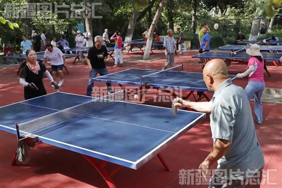 2023年8月7日,在乌鲁木齐市人民公园内,各年龄段的市民们正在一起打乒乓球健身。石榴云新疆日报记者 秦鹏摄