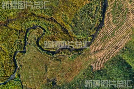 2023年8月21日,各类机械作业后在空中草原留下的一幅幅极具创意的画作。
