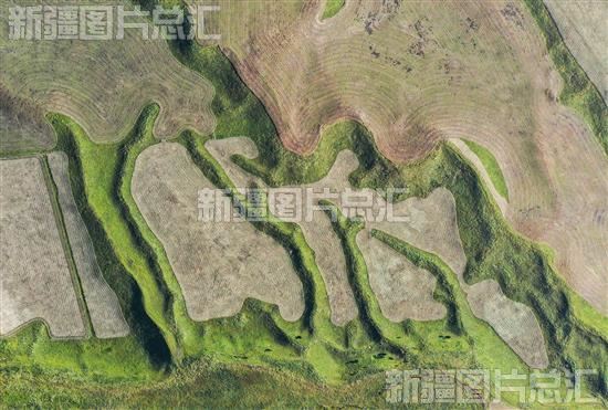 2023年8月21日,各类机械作业后在空中草原留下的一幅幅极具创意的画作。