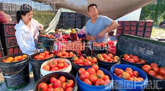 2023年8月20日,察布查尔锡伯自治县农业农村局驻良繁场“访惠聚”驻村工作队队员和种植户一起装运西红柿。