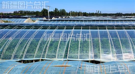 2023年8月20日,察布查尔锡伯自治县良繁场蔬菜种植基地,连片种植西红柿拱棚一角。