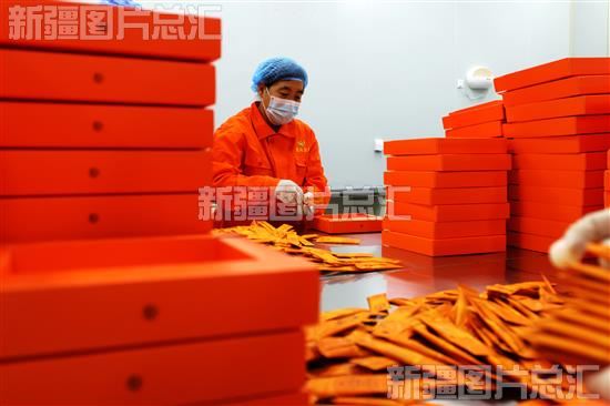 2023年8月22日,工作人员在位于哈巴河县工业园区的新疆康元生物技术集团股份有限公司生产车间包装沙棘产品。