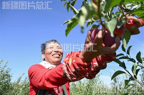 2023年8月26日,果农在呼图壁县五工台镇龙王庙村海棠果种植基地采摘海棠果。
