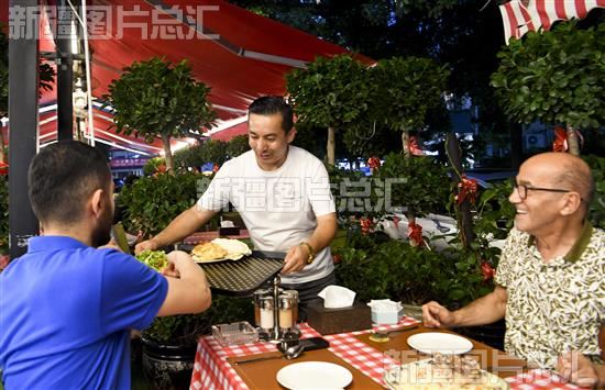 2023年8月20日,亚森·伊卜拉伊木为客人端上饭菜。