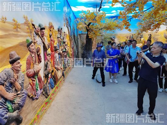 2023年8月24日,参会代表在阿瓦提县刀郎部落景区拍摄刀郎文化浮雕。