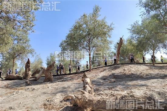 2023年8月24日,参会代表在阿瓦提县的胡杨林里行走。