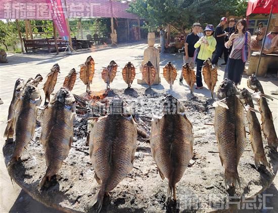 2023年8月24日,参会代表在阿瓦提县刀郎部落景区拍摄烤鱼。