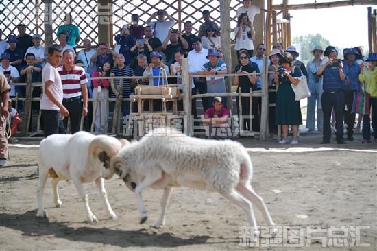 2023年8月24日,参会代表在阿瓦提县刀郎部落景区观看斗羊。