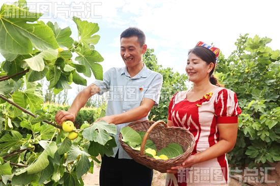 2023年8月25日,库车市医疗保障局驻伊西哈拉镇托万比加克村“访惠聚”工作队队员和果农采摘无花果。