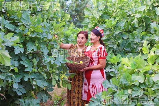 2023年8月25日,库车市伊西哈拉镇托万比加克村无花果采摘基地,果农们正忙着采摘无花果。