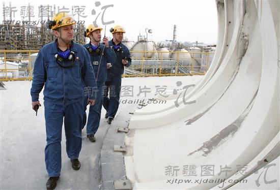2014年4月8日,独山子石化公司乙烯厂员工正在循环水场巡检。