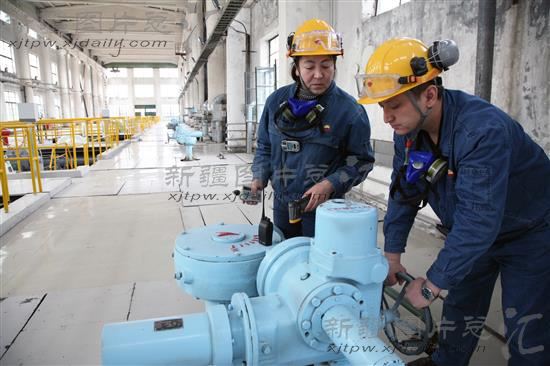 2014年4月8日,独山子石化公司乙烯厂水汽装置员工正在调整循环水的流量。